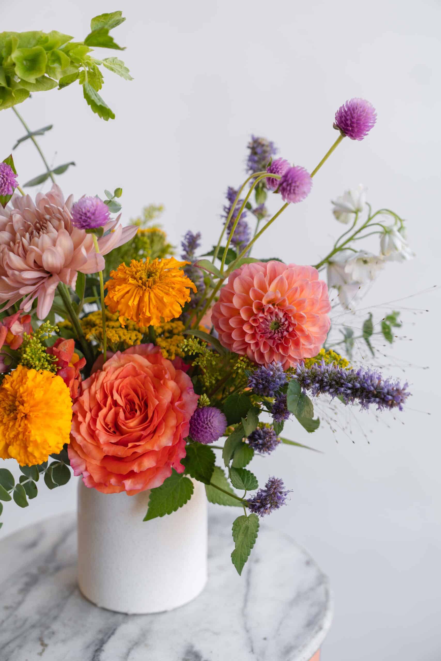 This bespoke bouquet features a curated collection of dahlias, mums, solidago, amaranth, eucalyptus, and snapdragons, all chosen for their rich, warm fall palette. Each flower is hand-selected to bring a vibrant autumnal atmosphere to any space. As with all our floral arrangements, this bouquet is artistically designed by our team at Stems Brooklyn and made to order, ensuring you receive a fresh and intentional design.