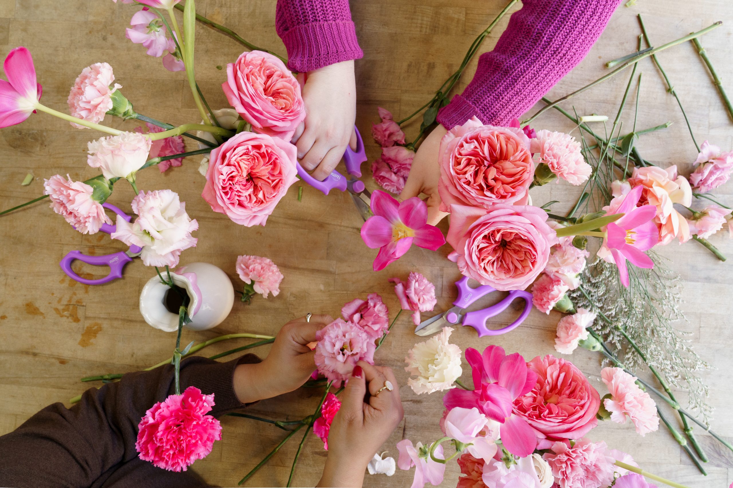 Join us in the studio this Valentine’s season for a hands-on floral design workshop that’s equal parts playful and PINK. Guided by one of our fabulous designers, you’ll work with a soft, fluttery palette of pink tulips and other bespoke stems to design your own Valentine’s Day treat. Couples, platonic pals, gals and groups all welcome 😍