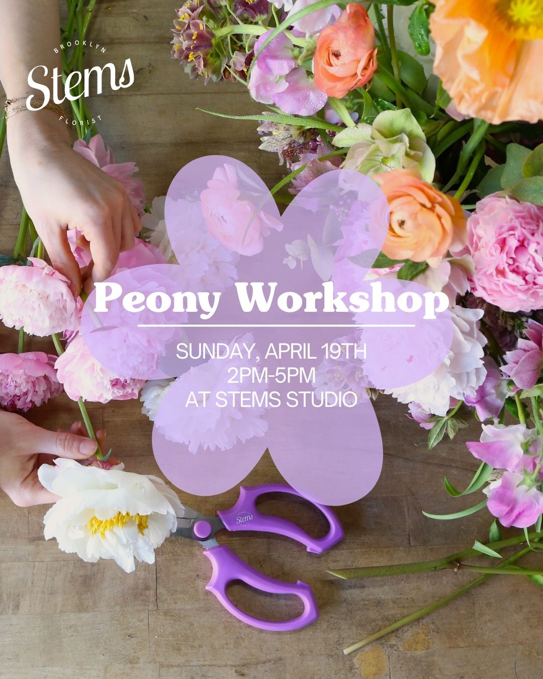 Join us in the Stems studio for an intermediate workshop centered around the season’s belle of the ball — peonies!! In this class, we’ll create a lush compote arrangement while diving deeper into floral mechanics, shape, and intentional structure.