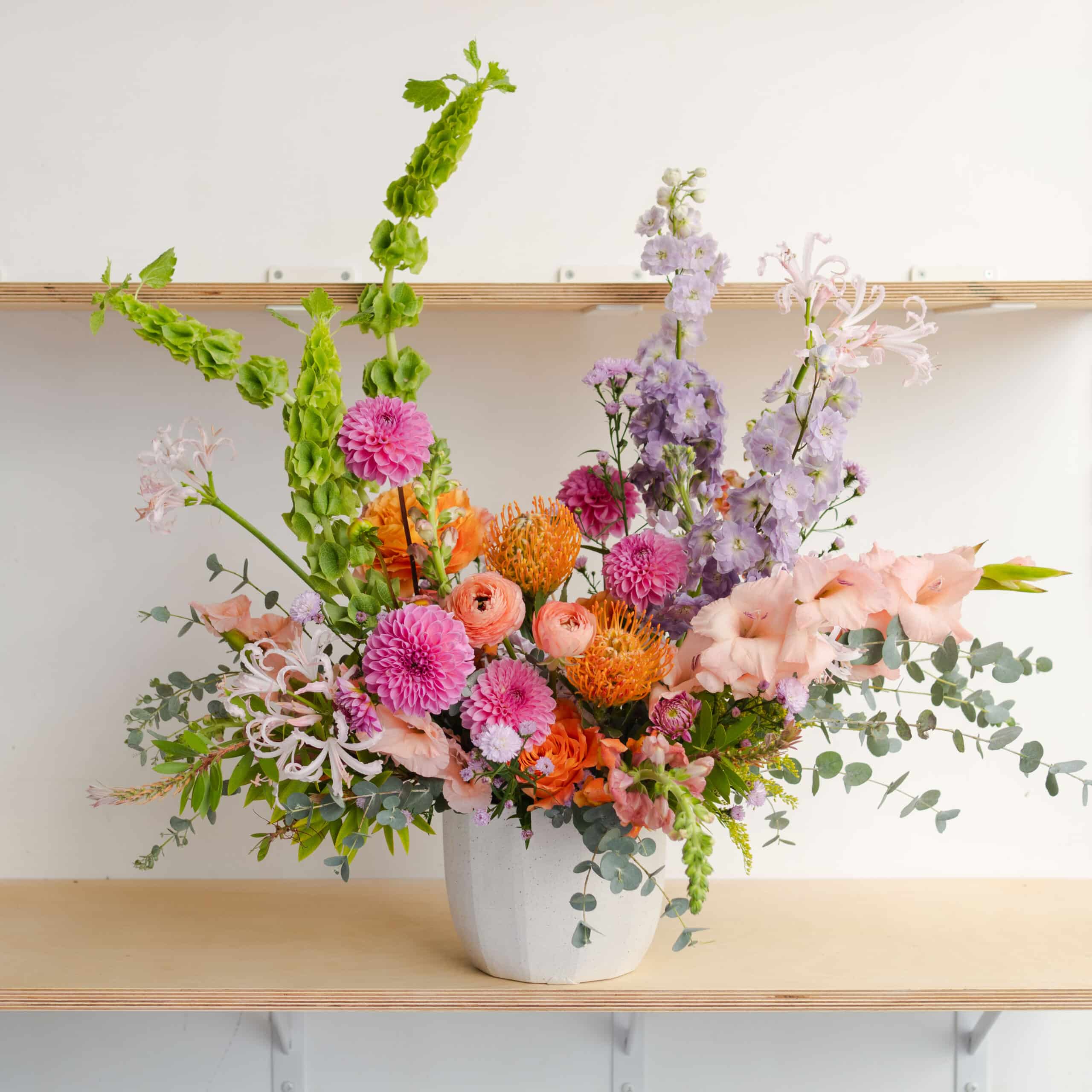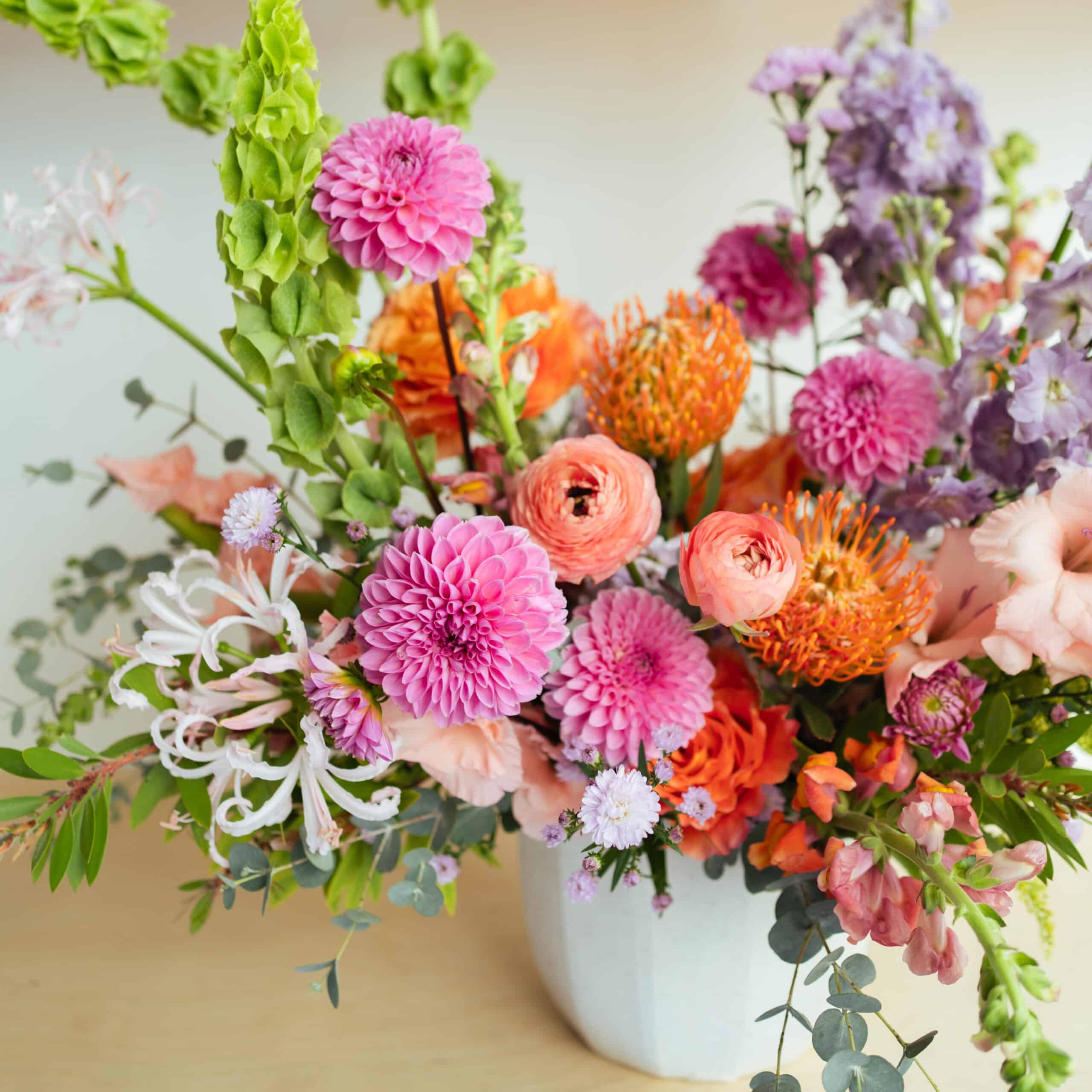 This showstopper is overflowing with our signature florals and playful shapes and is made to WOW! We use premium florals for these arrangements using responsibility sourced materials.